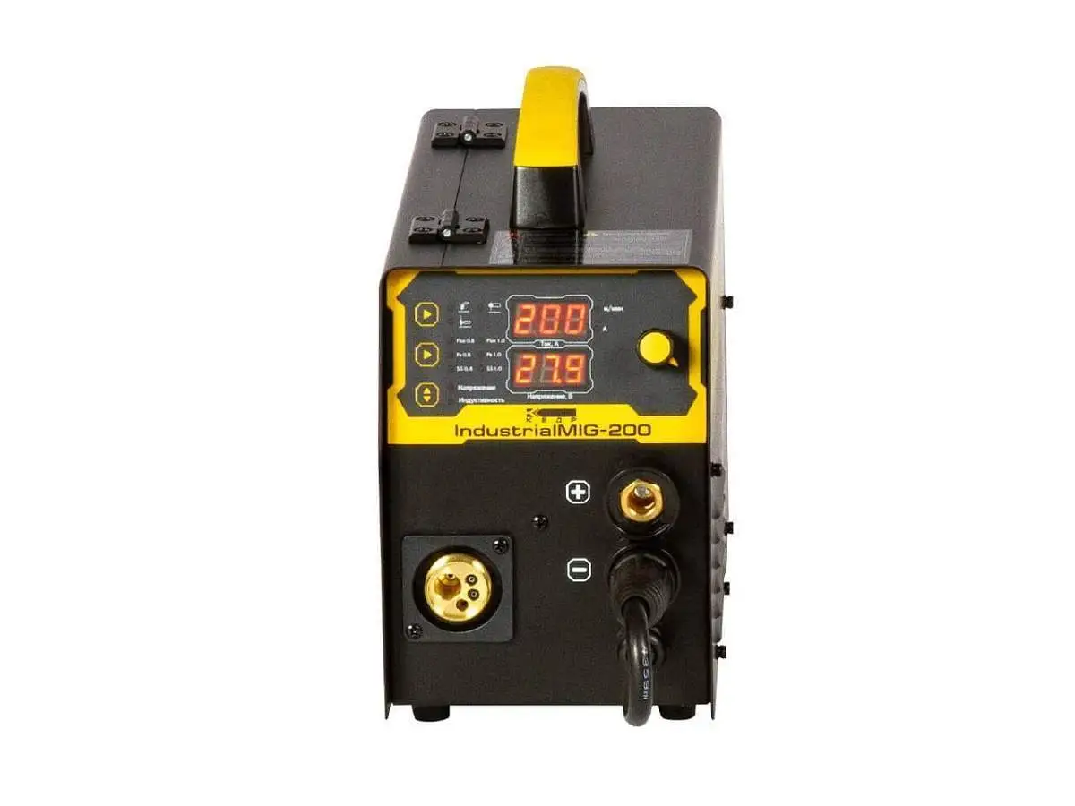 Сварочный полуавтомат КЕДР IndustrialMIG-180 и КЕДР IndustrialMIG-200 предназначен для сварки углеродистых и низколегированных сталей проволокой сплошного сечения или порошковой проволокой диаметром от 0,8 до 1,0 мм. В качестве защитного газа могут быть использованы инертные (Ar), активные газы (CO2) и сварочные смеси (Ar + CO2) для дуговой сварки плавящимся электродом в защитном газе (MIG/MAG).